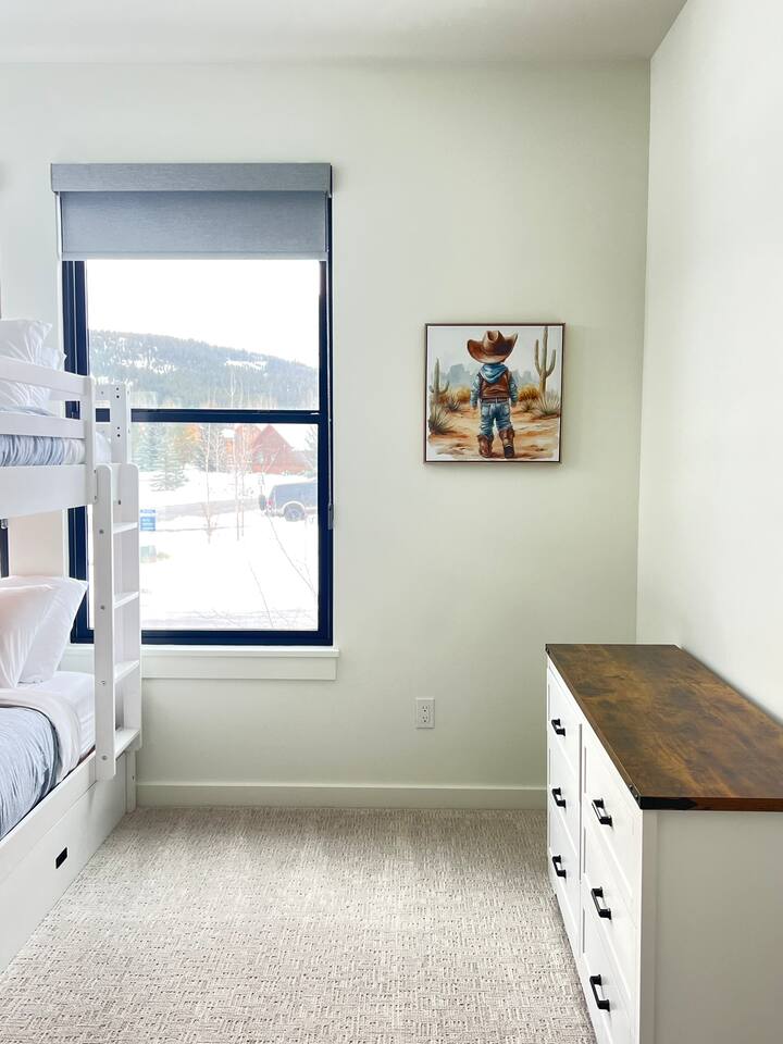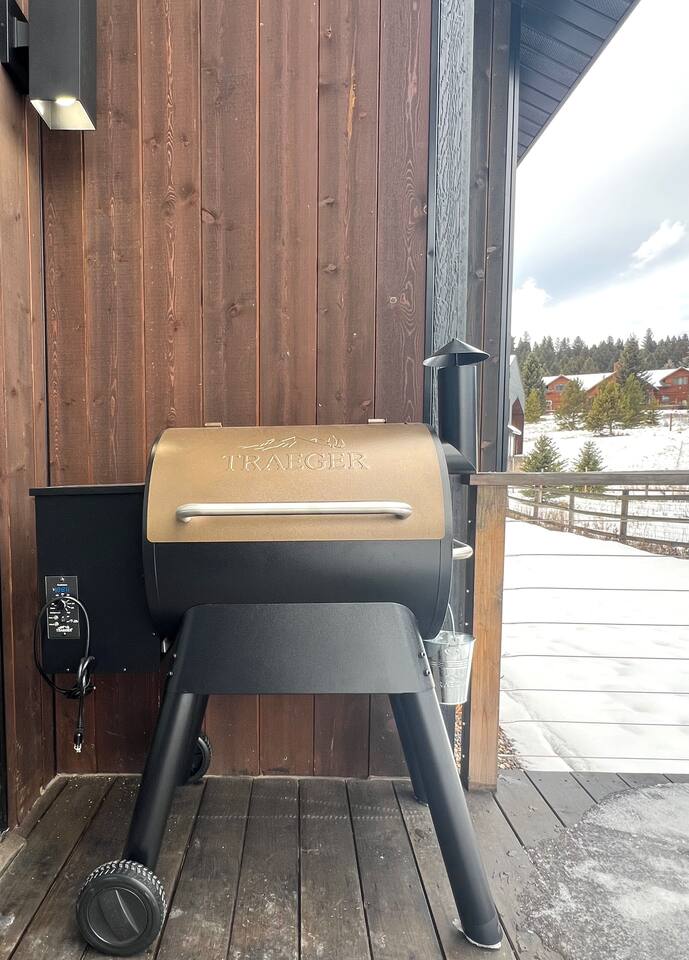 Step inside and feel the warmth immediately. Soaring vaulted ceilings and oversized windows fill every room with natural light and frame stunning mountain views. The open-concept living area flows seamlessly into a gourmet kitchen, a true chef's dream. KITCHEN & DINING High-end Bertazzoni appliances Large kitchen island with seating for 4 Large dining table with seating for 8 Elegant gold accent fixtures Fully stocked with cookware, dishes, and utensils for 16 Coffee bar with drip maker, French press, and Keurig LIVING AREA Wood-burning stove for cozy evenings Comfortable seating for the whole group Smart TV with streaming Board games and puzzles WORK FROM MONTANA High-speed WiFi throughout the entire property SKI-READY FEATURES Heated 2-car garage—no scraping windshields, warm car every morning Mudroom and dedicated ski and snowboard storage rack Boot and gear dryer—warm, dry boots every day Gear organization area so your equipment stays ready SLEEPING ARRANGEMENTS (Sleeps 16) Primary Suite: King bed with ensuite bathroom Guest Bedroom: Queen bed Bunk Room 1: 2 Queens + 1 Twin (sleeps 5) Bunk Room 2: 2 Queens + 1 Twin (sleeps 5) Living Room: Couch + queen air mattress available BATHROOMS 3.5 modern bathrooms including: Primary ensuite with dual-head walk-in shower Bathtub in secondary bathroom OUTDOOR SPACE Private 6-person hot tub Private patio BBQ grill Mountain views Fresh mountain air at 6,500 ft elevation HOME AMENITIES In-unit washer and dryer Central heating SAFETY & SECURITY Exterior security cameras (common areas only, no interior recording) Smoke and carbon monoxide detectors Fire extinguisher First aid kit